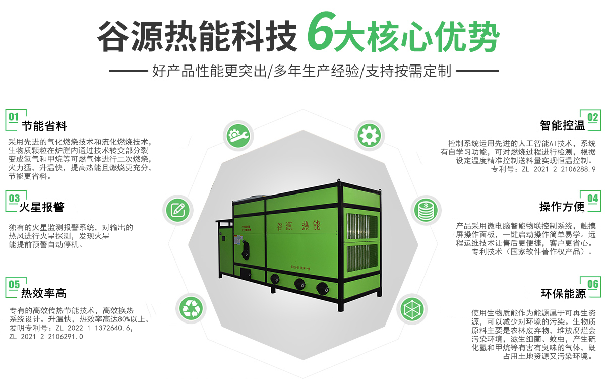 安徽谷源熱能科技有限公司坐落于大別山腳下的紅色革命老區(qū)——六安,是一家專業(yè)從事熱源產(chǎn)品的研發(fā)、生產(chǎn)、銷售、服務(wù)于一體的綜合性企業(yè)。 本公司主要生產(chǎn):糧食烘干用生物質(zhì)環(huán)保熱風(fēng)爐、生物質(zhì)稻殼熱風(fēng)爐、生物質(zhì)顆粒取暖爐、浴室用生物質(zhì)顆粒爐、涂裝生產(chǎn)線用生物質(zhì)顆粒爐、燃油熱風(fēng)爐、天然氣熱風(fēng)爐等熱源產(chǎn)品,公司產(chǎn)品采用微電腦控制,可自動點火,根據(jù)設(shè)定溫度自動進(jìn)料、自動控溫。使用燃料為生物質(zhì)顆粒,屬于可再生資源,相對運行成本低,節(jié)能環(huán)保。 我們以顧客為導(dǎo)向,一直致力于以提高產(chǎn)品質(zhì)量、降低客戶使用成本、節(jié)能環(huán)保為研發(fā)目標(biāo),不斷創(chuàng)新。 公司秉承“用心服務(wù),客戶至上;質(zhì)量為本,精益求精!”的經(jīng)營理念,以“節(jié)能環(huán)保”為使命,以“綠色燃料”為保障,以“先進(jìn)燃燒技術(shù)”為支撐,繼續(xù)推進(jìn)節(jié)能環(huán)保事業(yè)不斷向前發(fā)展。為改善能源結(jié)構(gòu),打造低碳城市,創(chuàng)建環(huán)境美好資源節(jié)能型社會,做出不懈努力。我們愿意與您真誠合作、共創(chuàng)雙贏,讓我們攜手共創(chuàng)輝煌的明天。竭誠歡迎各界朋友光臨惠顧!